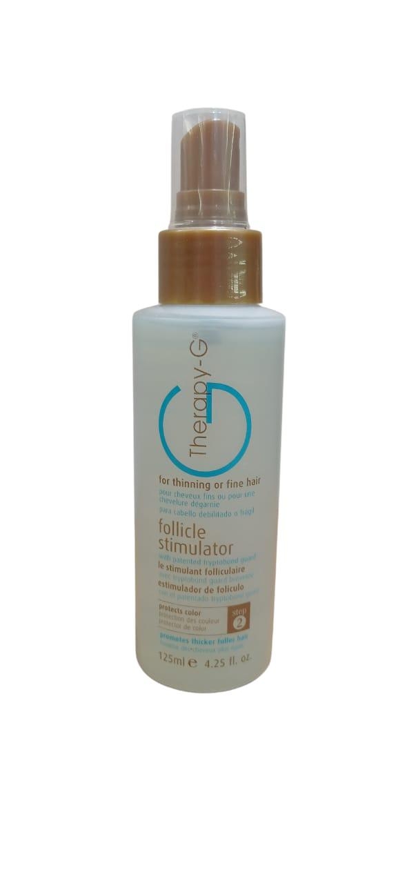 Therapy-g Follicle Stimulator is formulated to nourish the hair follicle and scalp, extend the growth cycle of the hair and stimulate renewed growth by promoting vital circulation of the scalp.