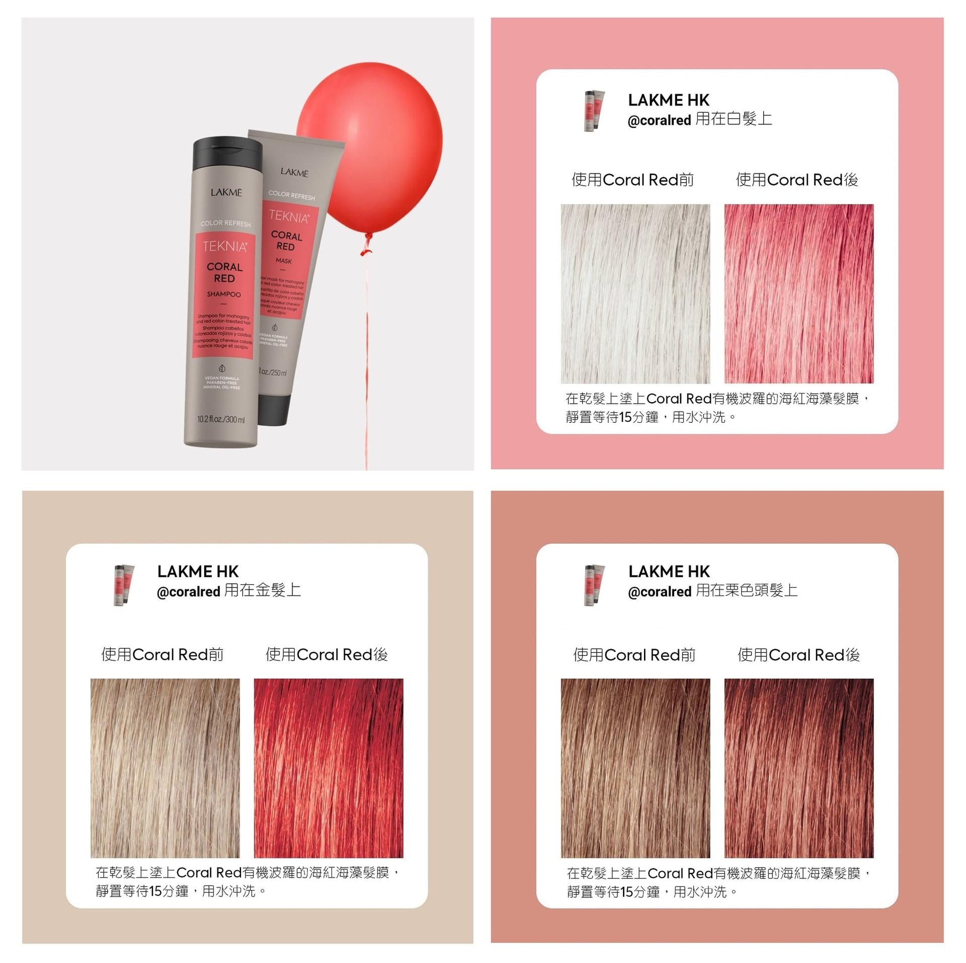 專為紅色染髮者設計,可修復流失的染劑色調,恢復髮色的亮麗色澤及反映秀髮紅色色彩強度。