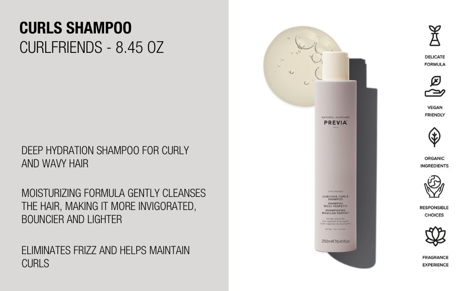 Previa 有機曲髮輕盈洗頭水適合電髮或陶瓷曲髮後使用,含有豐富的小麥蛋白、有機蘆薈精華、維他命 B5 及堅果油,能夠迅速提供水分予缺水髮絲,修護電後受損頭髮,有效潔淨秀髮的同時,不會破壞秀髮本身的保護膜。