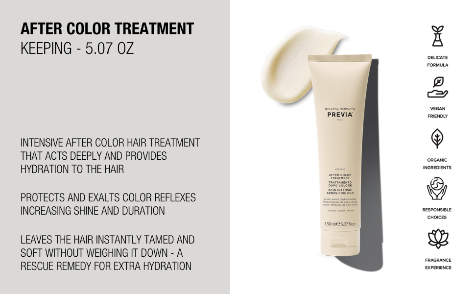 Previa 有機染後亮麗護髮焗油適合染髮後髮質使用,含有豐富的氨基酸、有機綠茶精華、維他命 B5 等,可高度滋養並延長頭髮顏色的壽命,同時隔絕傷害頭髮顏色的有害物質,能夠深層滋潤染後乾燥、糾結的髮絲。